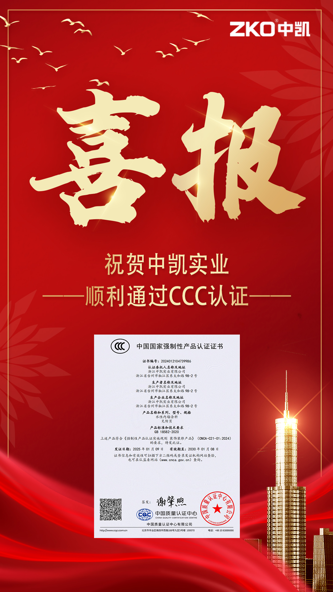 浙江中凱實(shí)業(yè)有限公司是一家由美國杜邦涂料化工集團(tuán)有限公司提供高新技術(shù),與美國杜邦化工集團(tuán)有限公司授權(quán)在中國生產(chǎn)各種建筑涂料的制造企業(yè)。
